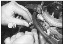 2. На корпусе дросселя отсоедините сердечник троса от пластины шпинделя дроссельной заслонки - сердечник следует оттянуть, а затем отсоединить наконечник.