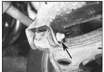 5. Отдайте гайку и болты крепления задней осевой втулки нижнего рычага к днищу автомобиля...