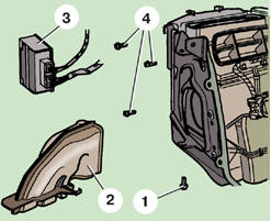 12. Отсоедините колодку 4 (см. рис. Снятие вентилятора отопителя) с проводами от