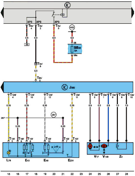 Cхема электрооборудования автомобиля Skoda Fabia - 34Lancia Musa / Электросхемы / Cхема электрооборудования автомобиля Skoda Fabia - 34